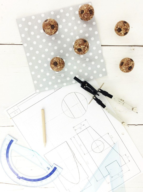 - Aus der Masse ca. 15 Walnuss-große Kugeln formen. In jede Kugel einige Schokodrops drücken. Das klappt am besten, wenn Du sie mit der flachen Seite nach unten in die Masse drückst.