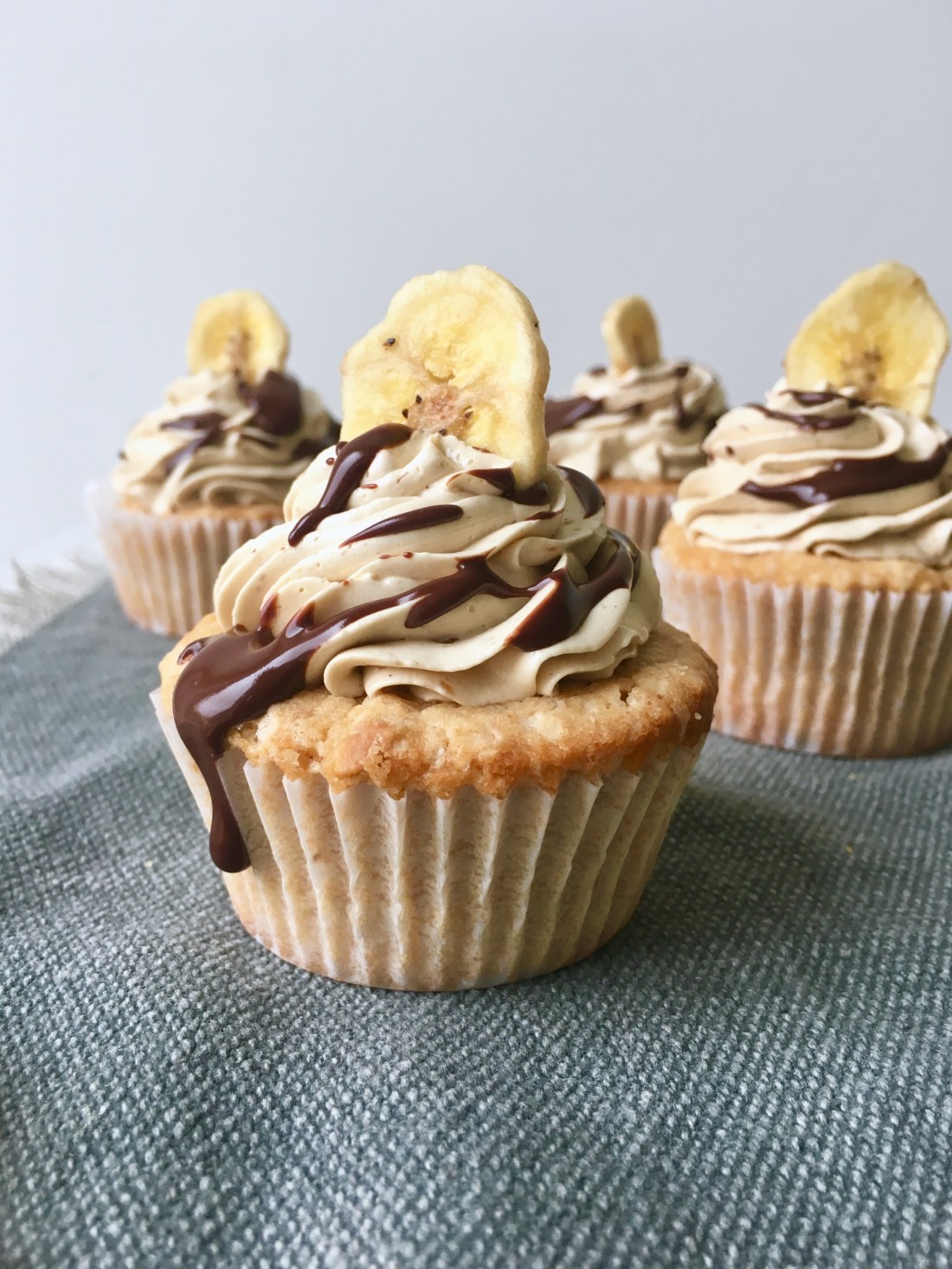 Diese Cupcakes sind meine Interpretation der Peanut & Banana Caramel Cupcakes von Cupcake Jemma. Sie bestehen aus einem fluffigen Erdnuss-Cupcake, der mit Bananenkaramell gefüllt und mit Bananenkaramell-Buttercreme getoppt wird. Die Kombination ist so lecker, das musste ich einfach veganisieren.
