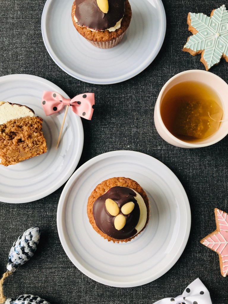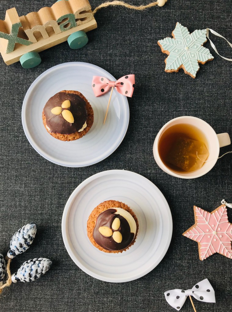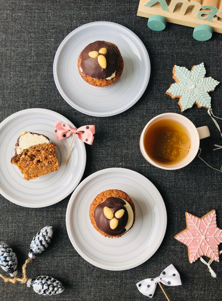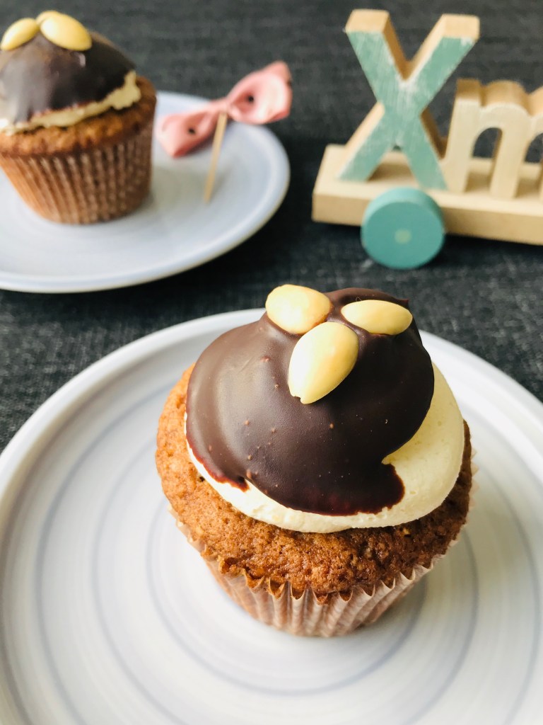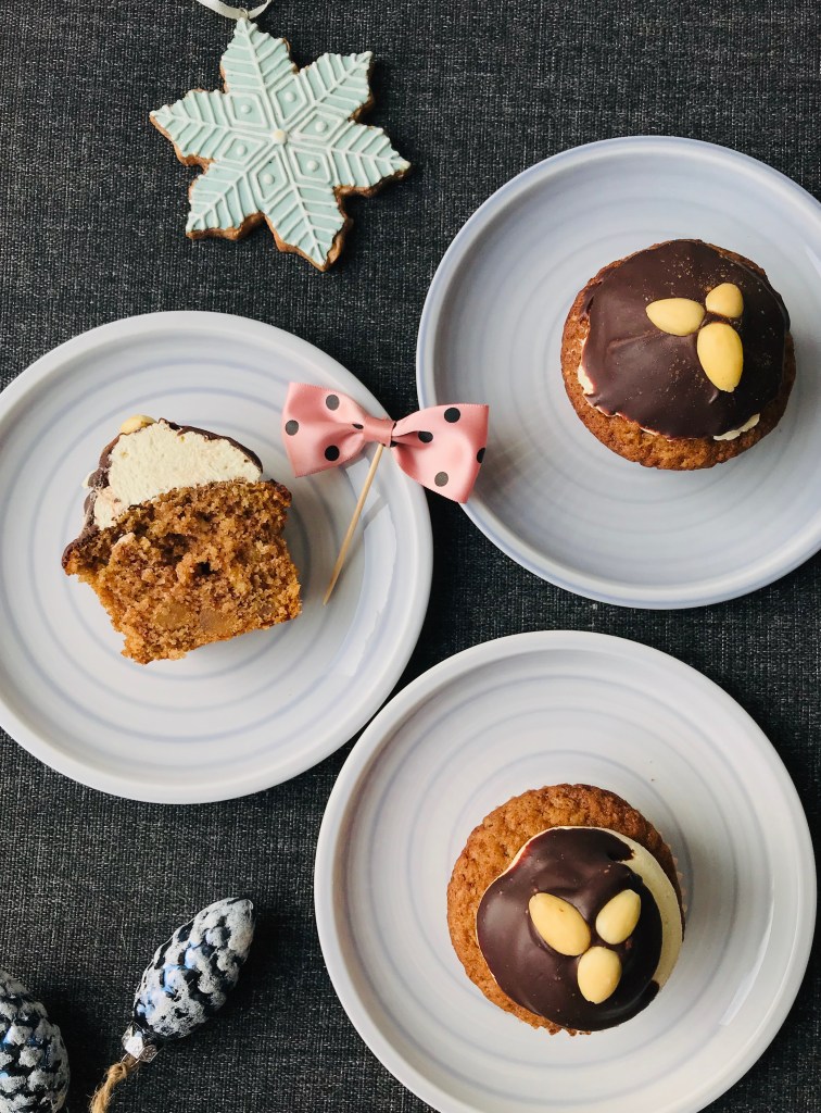 Die saftigen Küchlein alleine schmecken schon sehr lecker nach Haselnüssen und weihnachtlichen Gewürzen, und in Kombination mit dem fluffigen, super marzipanigen (anders kann ich es nicht beschreiben) Cremetopping musste ich mich wirklich schwer zusammenreißen, nicht einfach alle selbst aufzuessen. Der Geschmack ist am nächsten Tag sogar noch besser, wenn die Aromen Zeit hatten, sich zu einem harmonischen Ganzen zu verbinden.