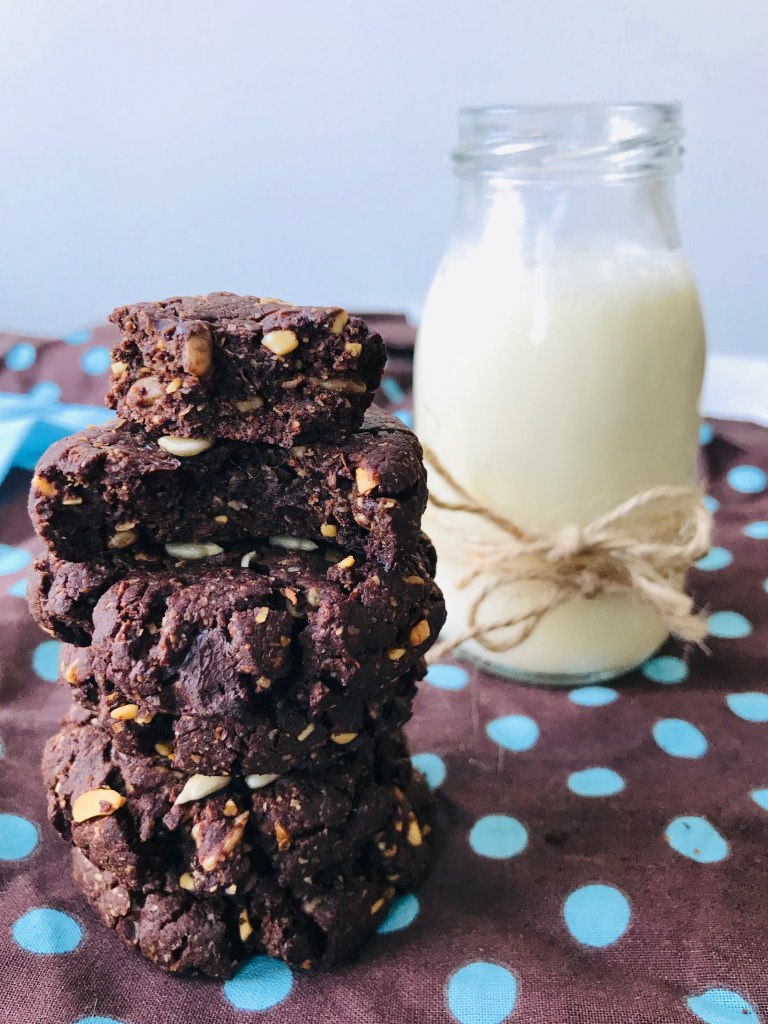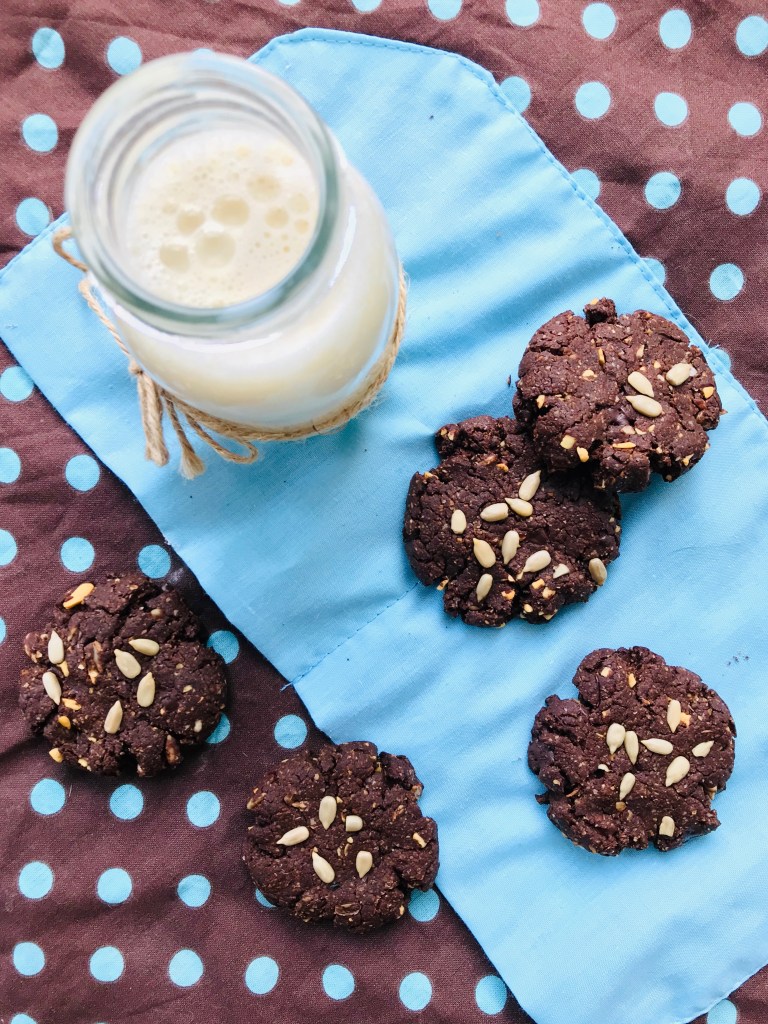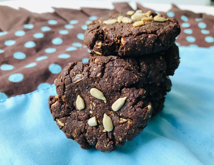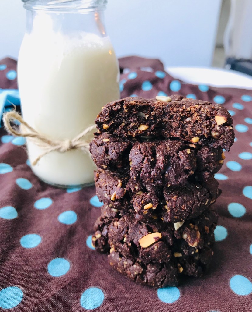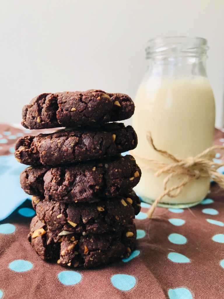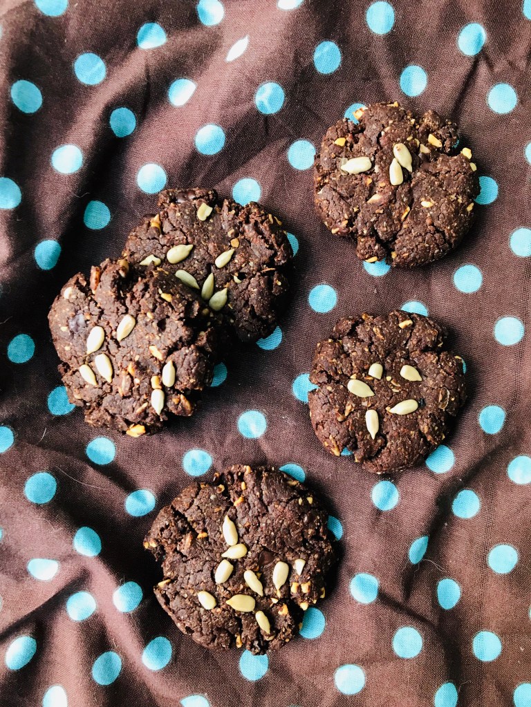 Schokoladige Cookies aus vollwertigen Zutaten frei von Margarine, raffiniertem Zucker und Gluten.