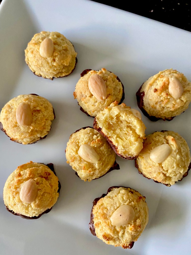 Weicher fruchtiger Marzipankern mit knuspriger Cookie-Hülle gedippt in dunkle Schokolade.