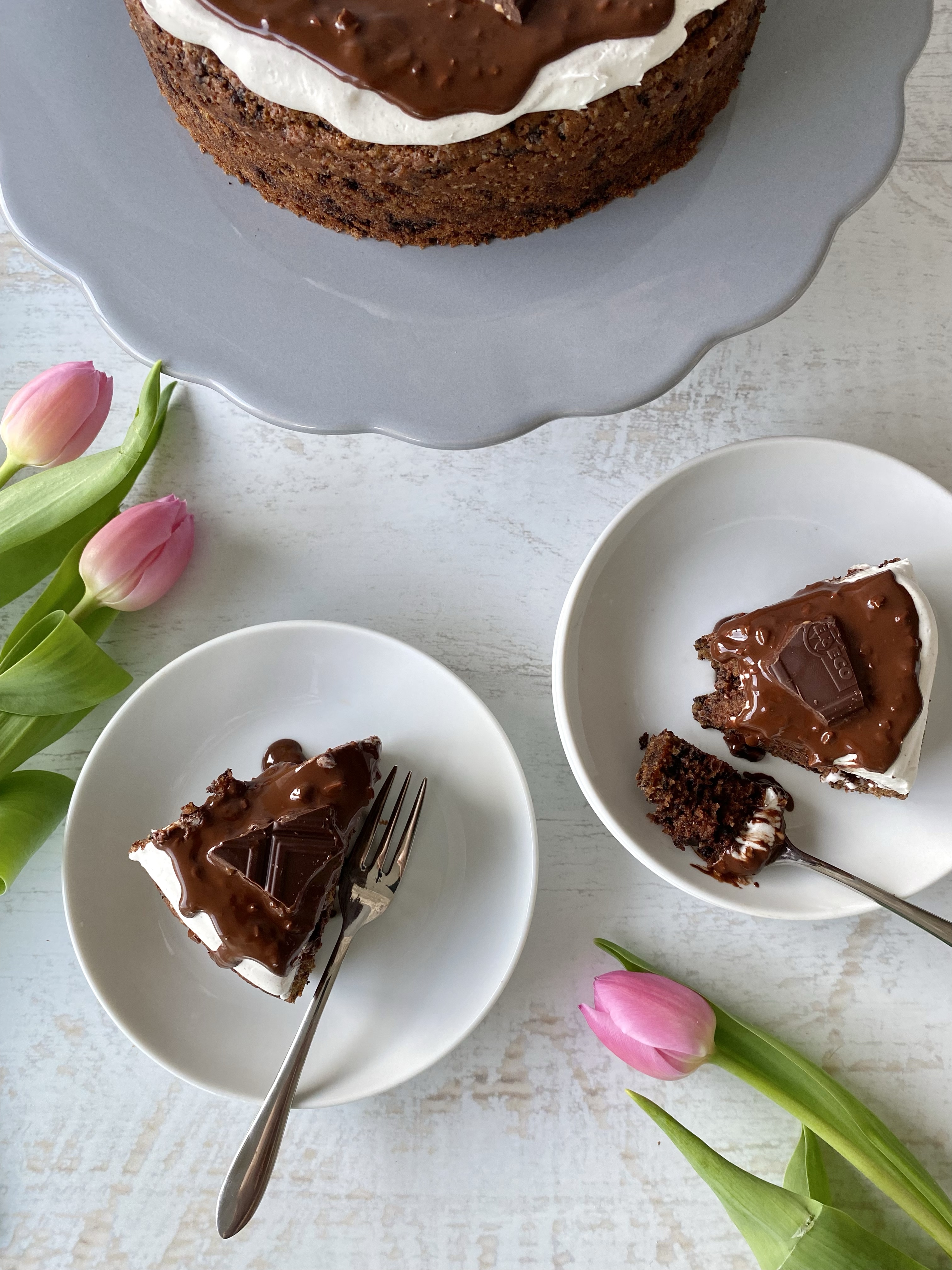 Bei der Veganisierung des Rezepts habe ich besonderen Wert darauf gelegt, dass der Kuchen seinen charakteristischen Geschmack beibehält, saftig ist und beim Anschneiden nicht bröselt. Eine Geheimzutat, die im Originalrezept nicht vorkommt, sind gemahlene Mandeln. Sie schmecken kaum heraus, machen den Kuchen aber saftig und sorgen für eine angenehme Textur.