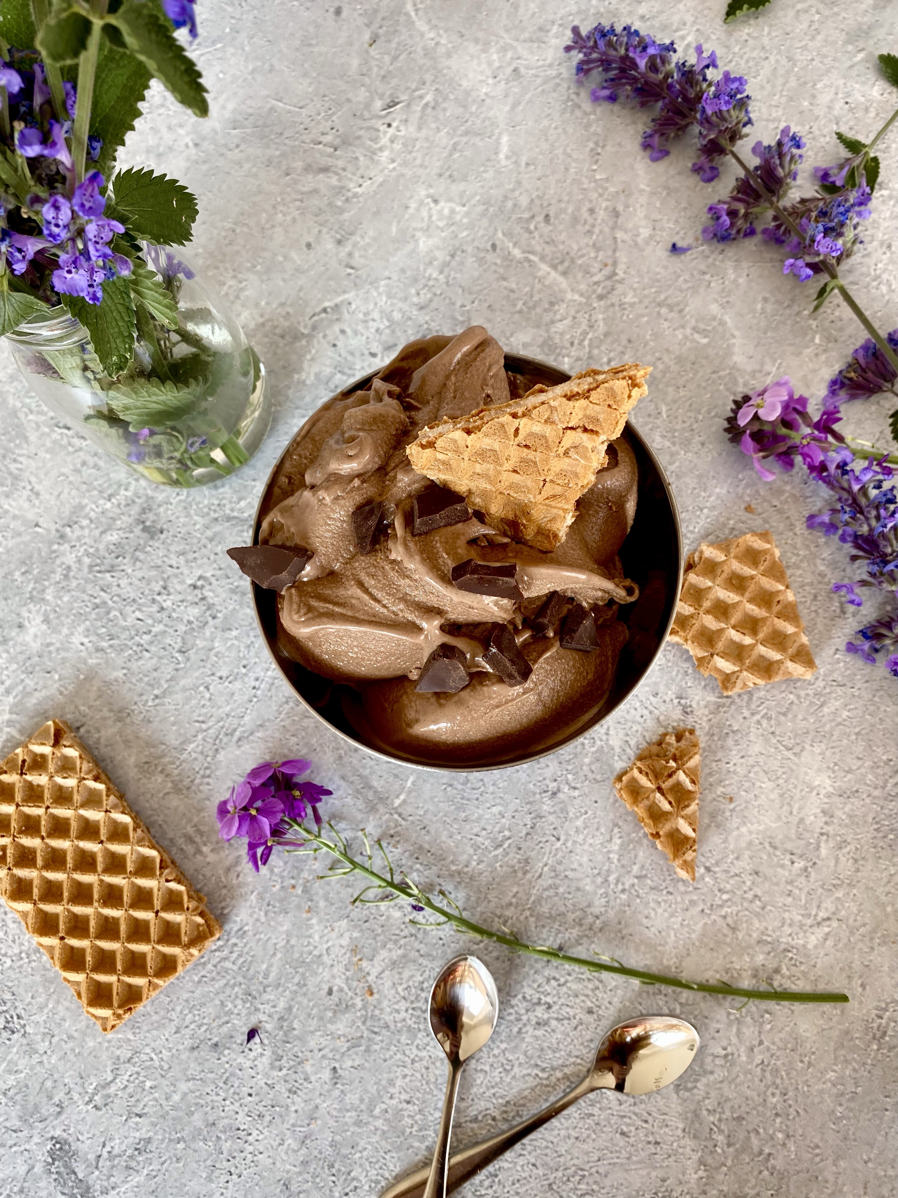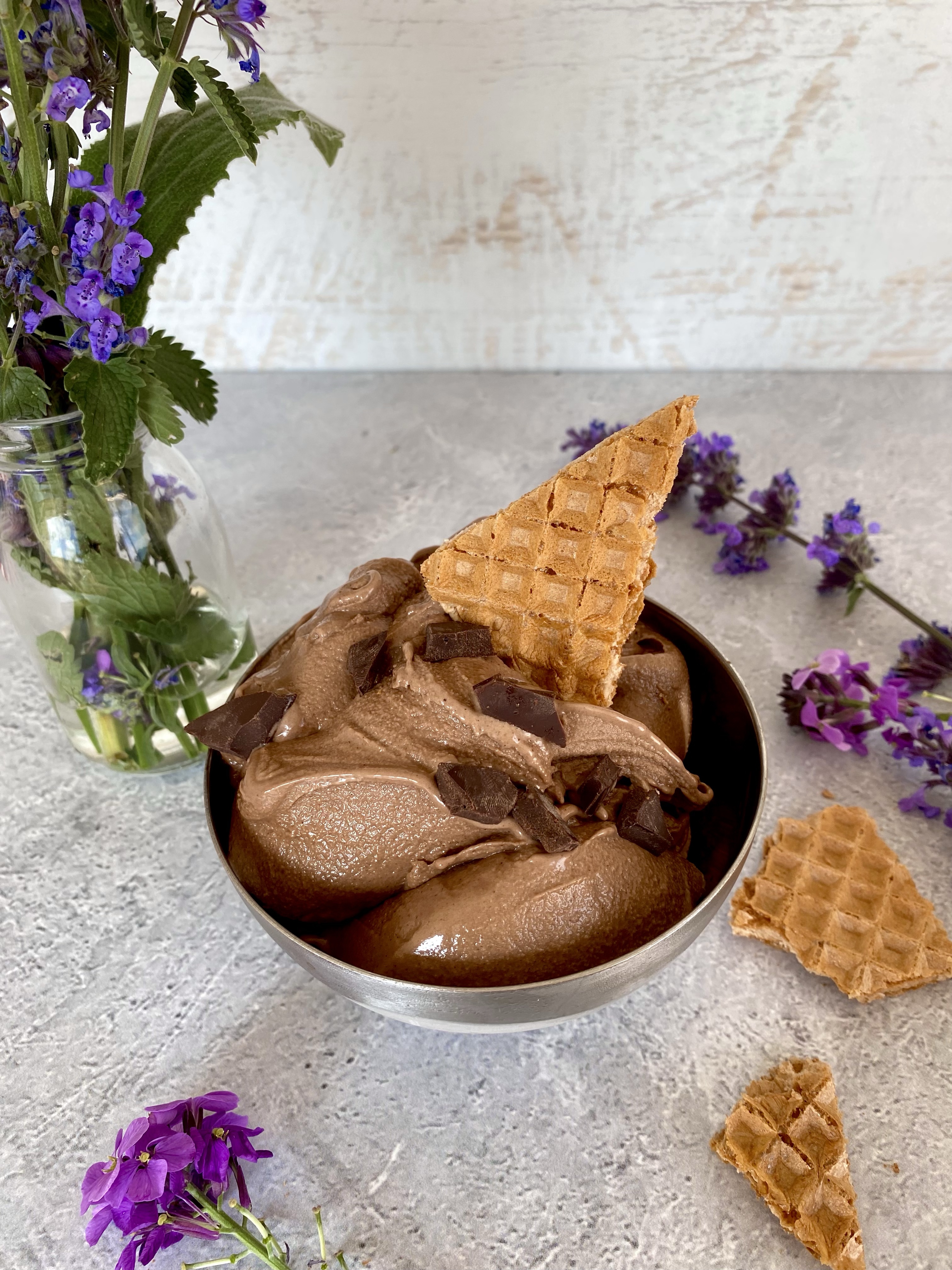 Dieses Eis zählt zu meinen absoluten Favoriten. Es ist super cremig, vollmundig, frei von raffiniertem Zucker und auf Wunsch sogar sojafrei. Es schmeckt wie eine Kugel Ferrero Rocher, nur eben in der Form von erfrischendem Eis.