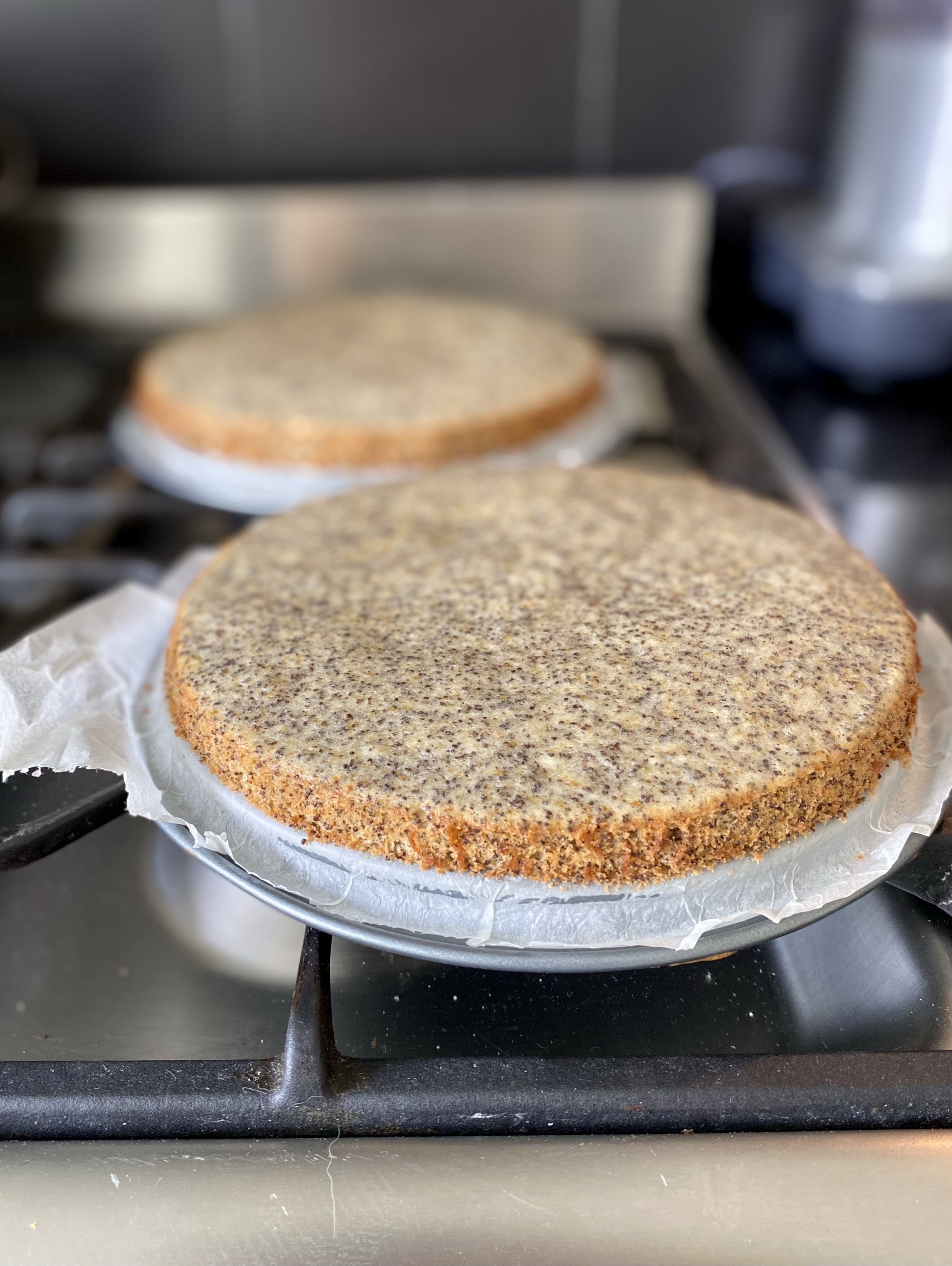 8. In den Formen etwas abkühlen lassen, dann die Biskuitböden herausnehmen und auf einem Kuchenrost komplett abkühlen lassen.