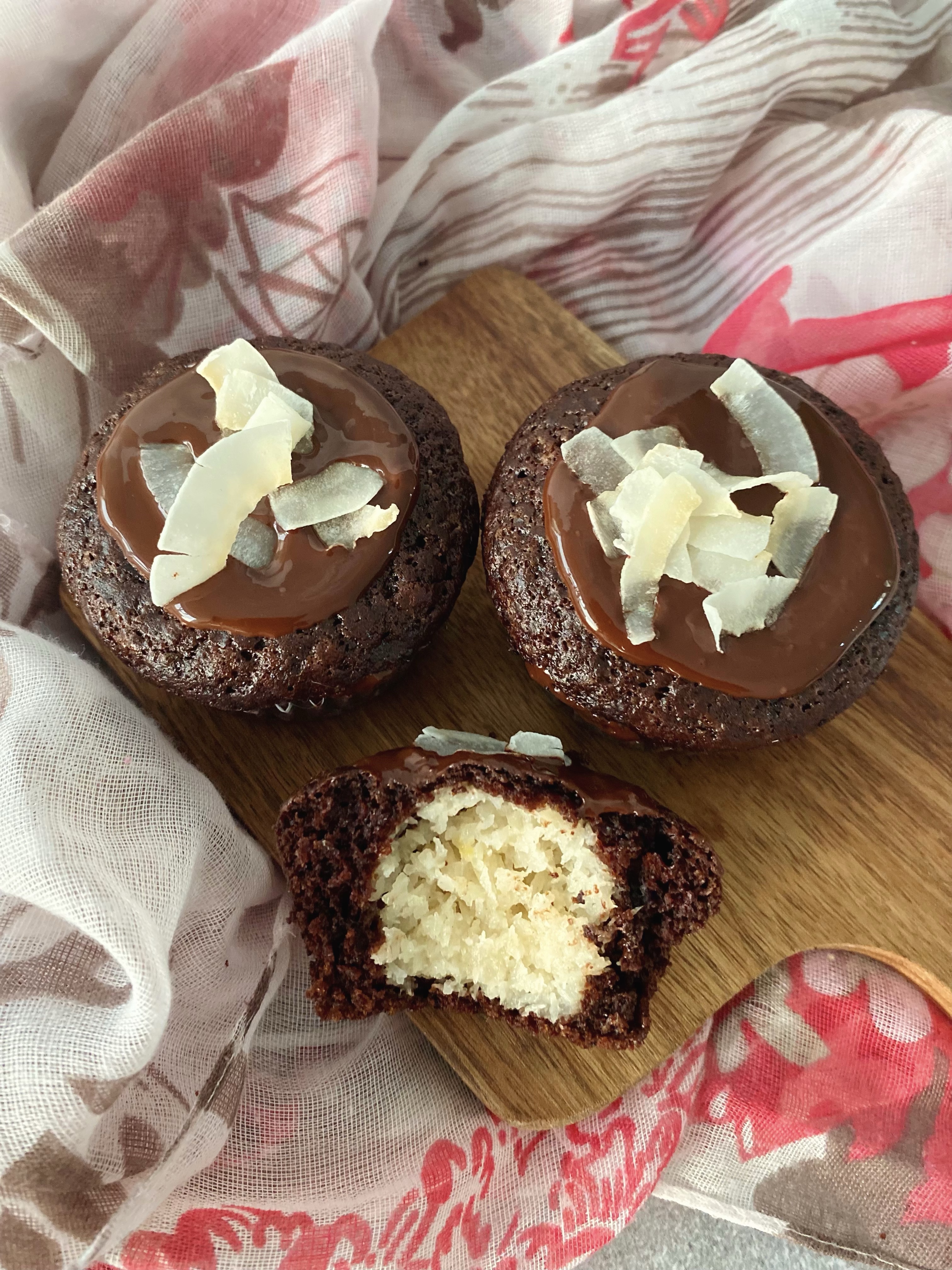 Die Kombination von Kokos und Schokolade passt so gut zusammen und macht die Muffins unwiderstehlich lecker. Das Rezept ist inspiriert und veganisiert von Tortentine. Probiere es gerne einmal aus!
