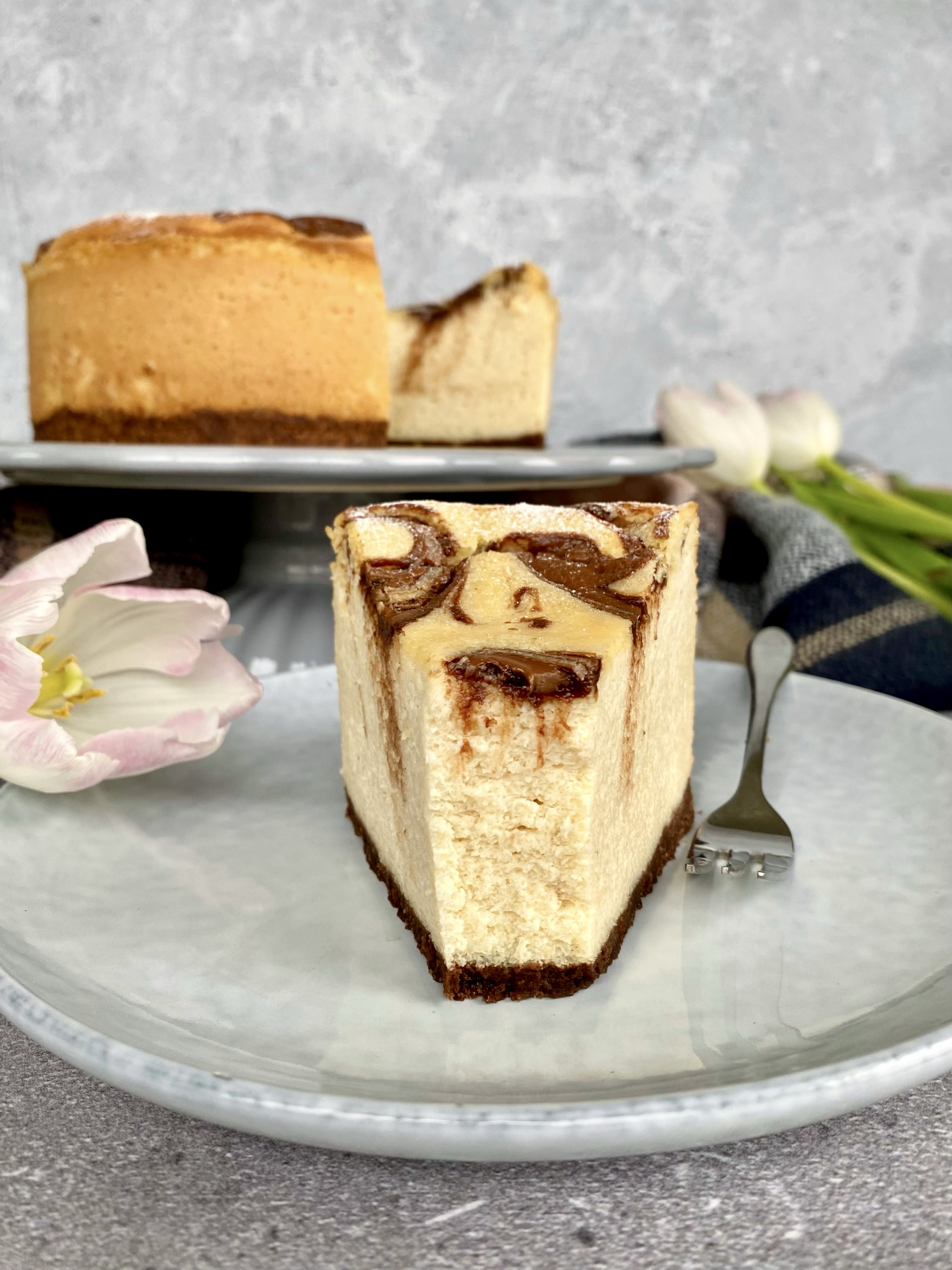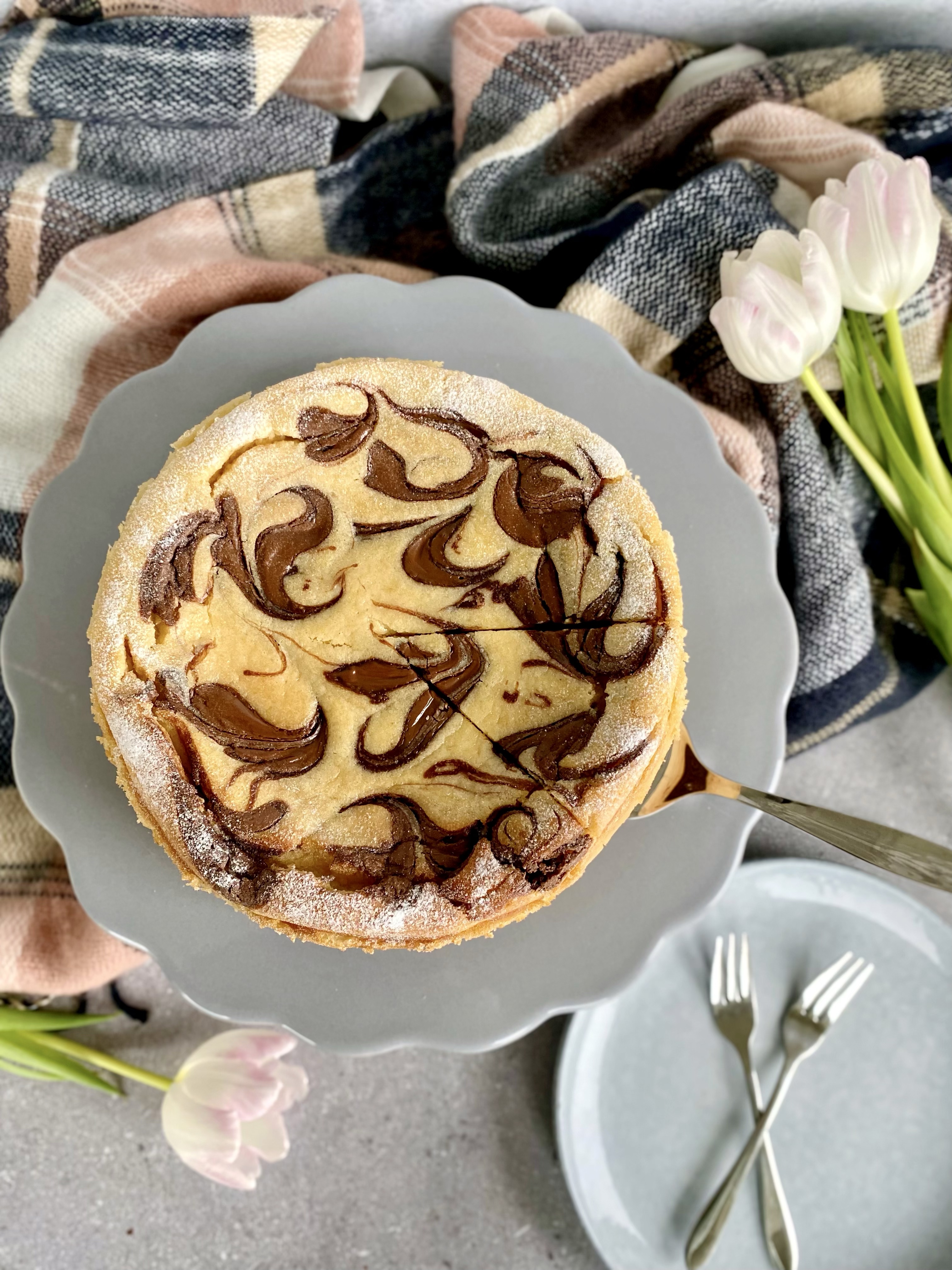 Käsekuchen ist für sich alleine natürlich schon ein Highlight. Kommt dazu Nougat mit ins Spiel in der Form von Nougat-Mürbeteig und -swirl, entsteht eine ganz besondere Köstlichkeit, die einfach unwiderstehlich lecker ist!