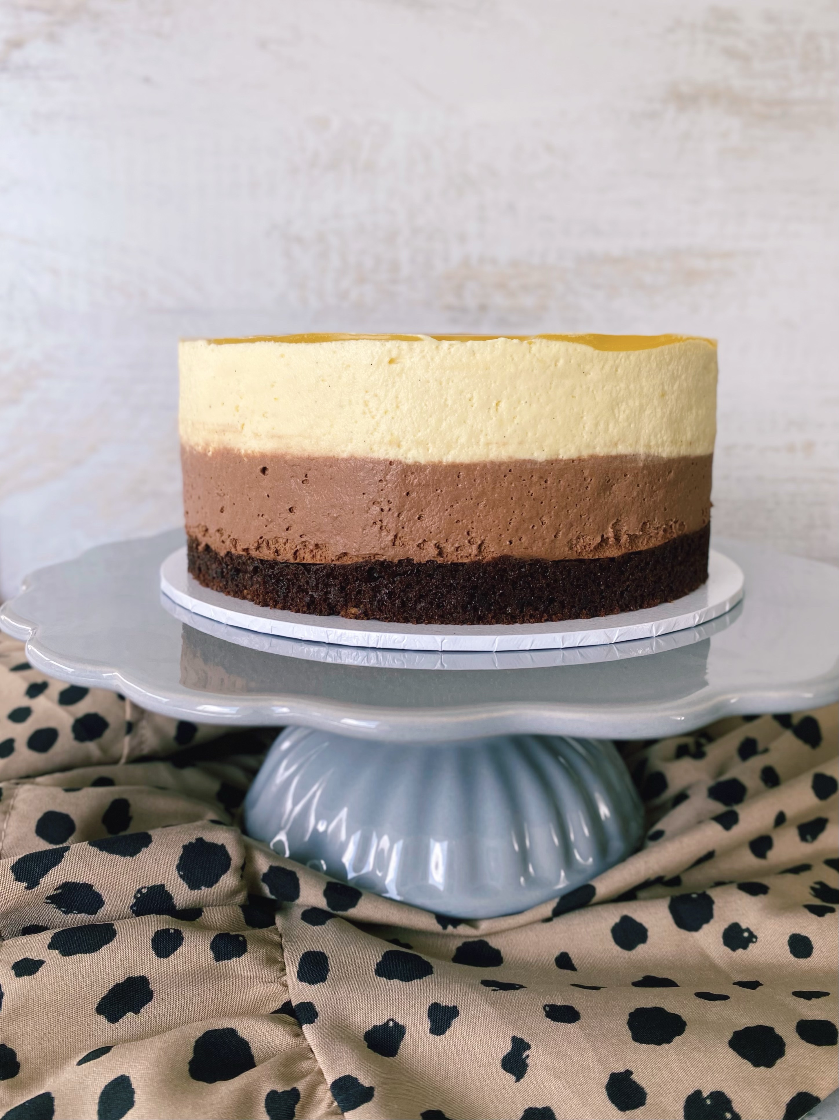 Luxuriöse Torte mit vier verschiedenen Schichten für das ultimative Geschmackserlebnis.