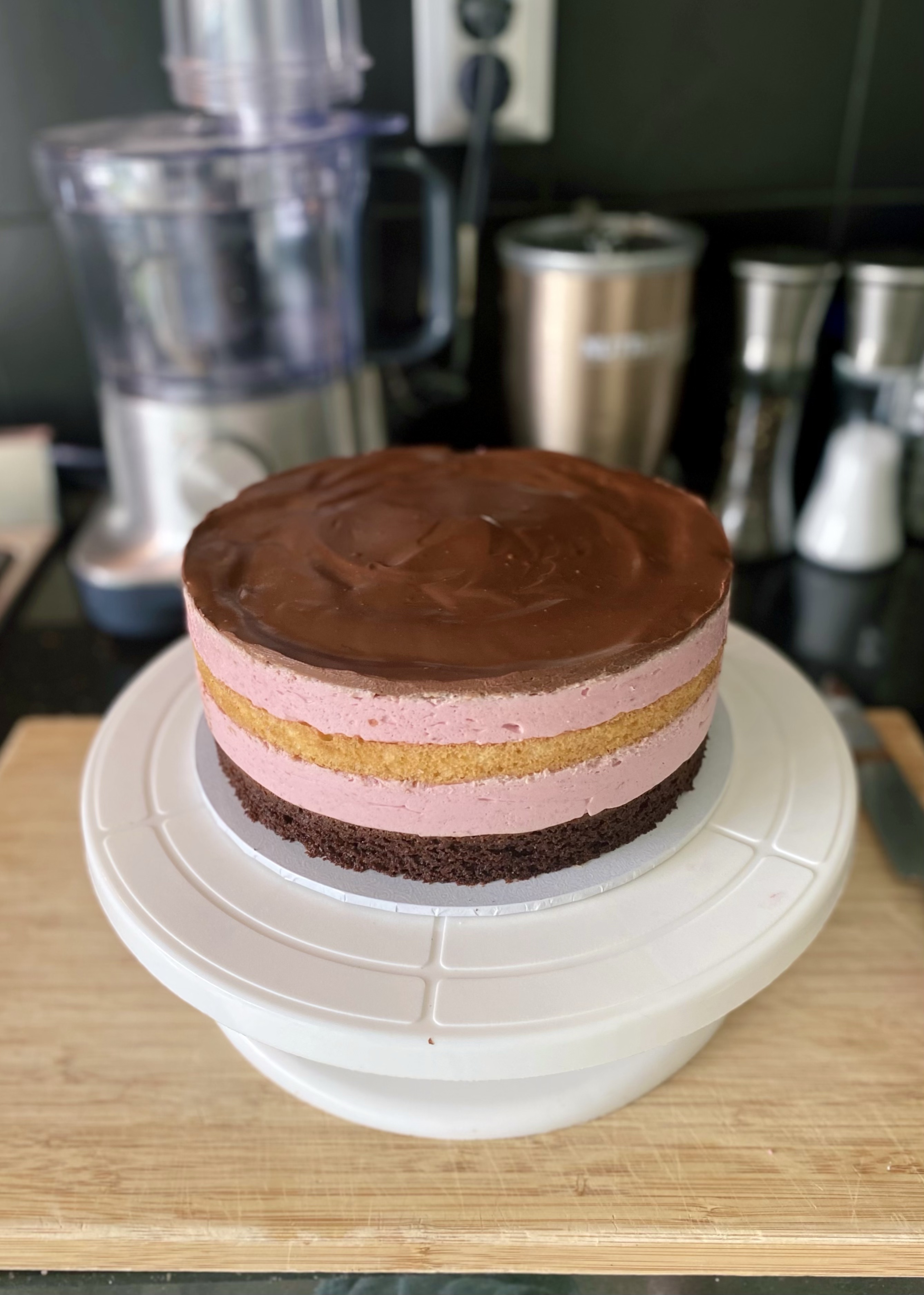 Schoko-Vanille-Himbeermousse-Torte