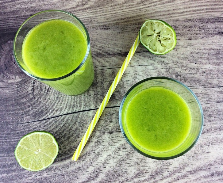 Dieser köstliche Smoothie aus tropischen Früchten, Ingwer, Spinat und Kokoswasser erinnert an Sonne, weißen Sandstrand und Meer.