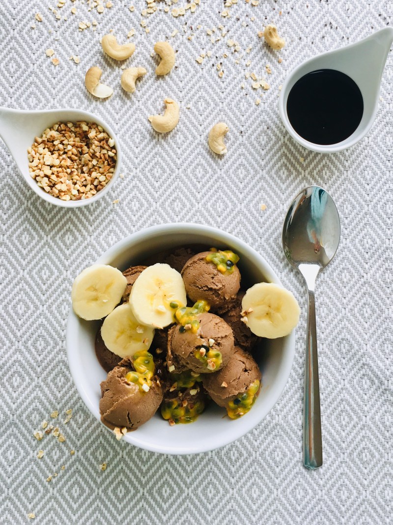 Morgendliches Müsli mal anders, transformiert in leckeres Schokoladeneis.