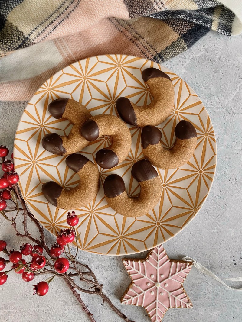 Klassische zartkrümelige Kipferl mit viel Nougat und knackiger Schokolade.