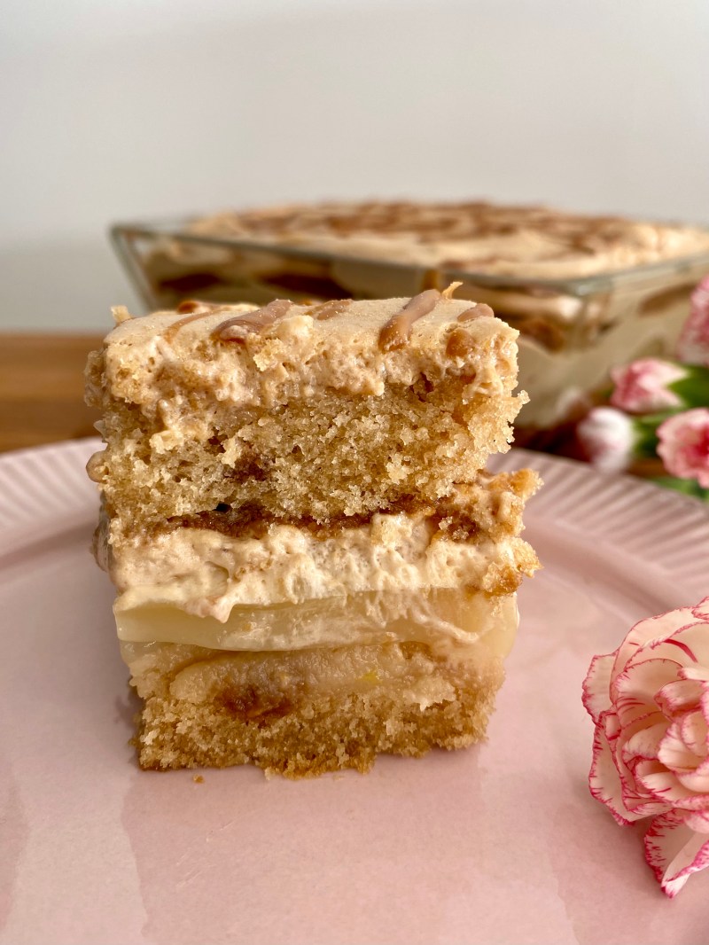 Dieses Biscoff-Tiramisu passt zu jeder Jahreszeit: zarter, mit Pfirsich-Sirup getränkter Biscoff-Biskuit geschichtet mit Pfirsichen und luftiger Biscoff-Sahne.