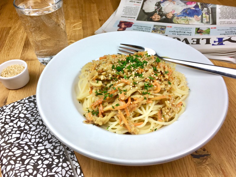Pasta mal anders – mit Pastinaken und Möhren in einer cremigen Tahini-Sauce.