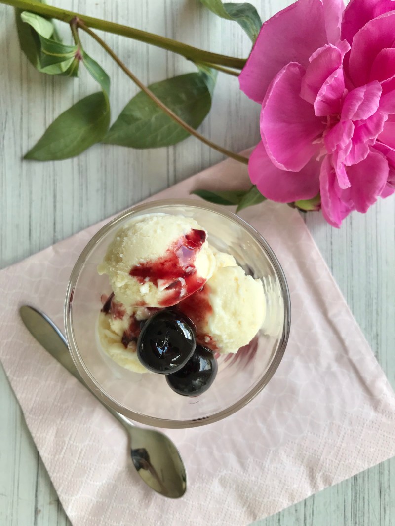 Dieses vegane Joghurt-Amarena-Eis schmeckt vollmundig, cremig und frisch und sündhaft lecker mit dem Swirl aus Amarena-Kirschen.