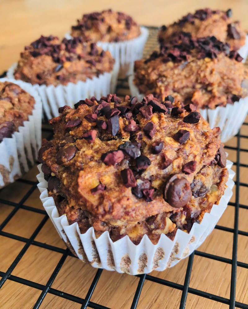 Gesund oder köstlich? Am liebsten beides! Diese saftigen Muffins schmecken unheimlich lecker nach Banane und Nüssen und kommen ohne Zucker und Gluten und mit nur wenig Öl aus.