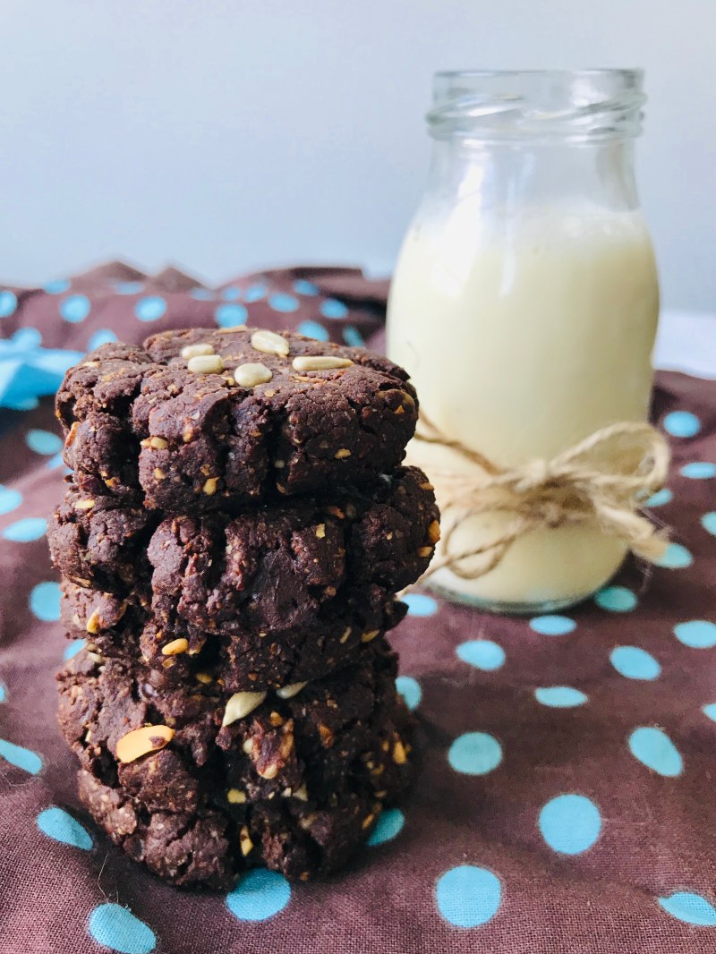 Schokoladige Cookies aus vollwertigen Zutaten frei von Margarine, raffiniertem Zucker und Gluten.