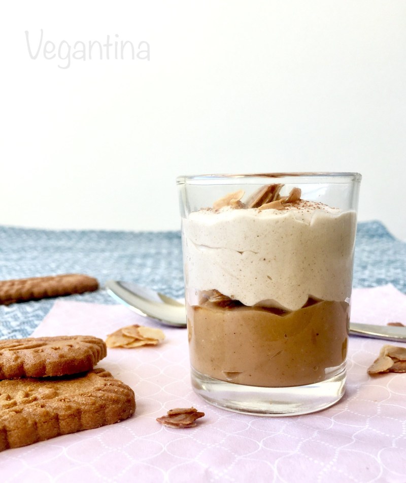 Weihnachtliches Dessert mit zwei leckeren Schichten aus Spekulatiuspudding und Spekulatiussahne verfeinert mit karamellisierten Mandeln.