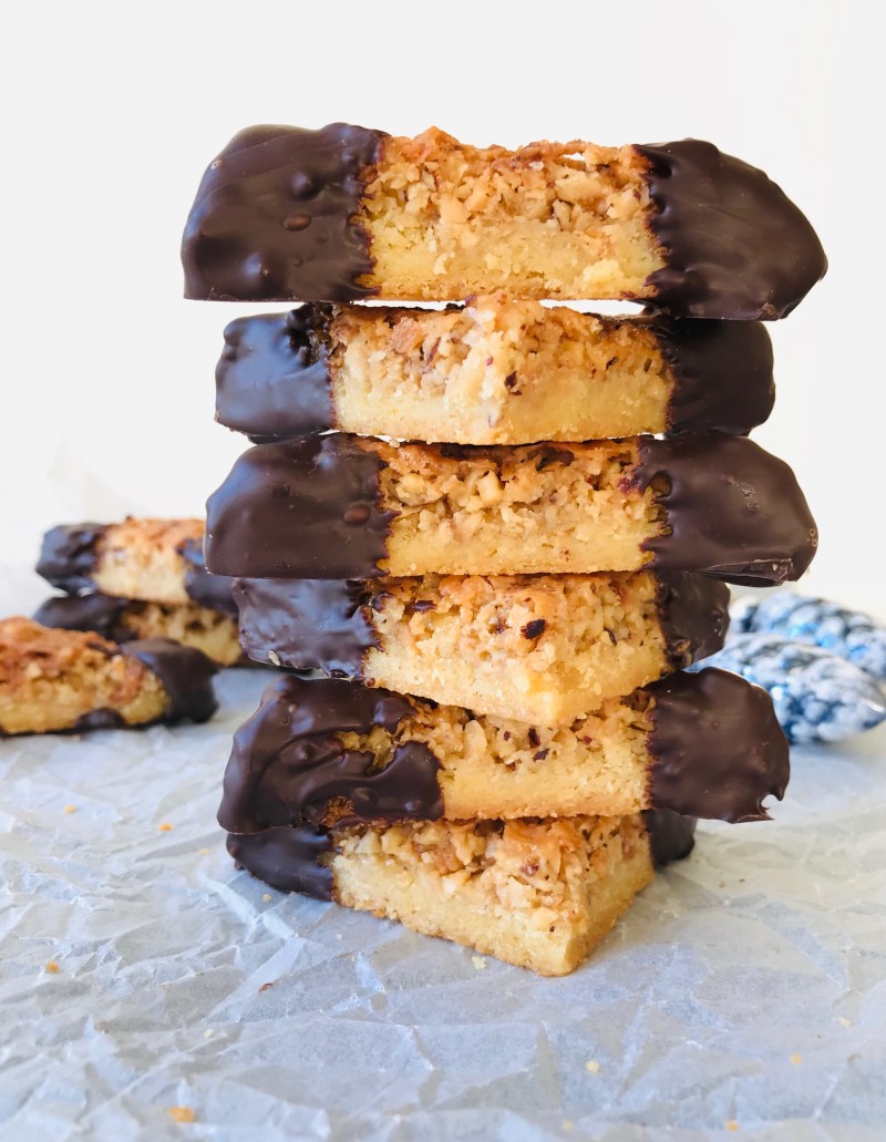 Klassiker mit Mürbeteig, Aprikosenkonfitüre, Haselnüssen und einem Guss aus Schokolade.